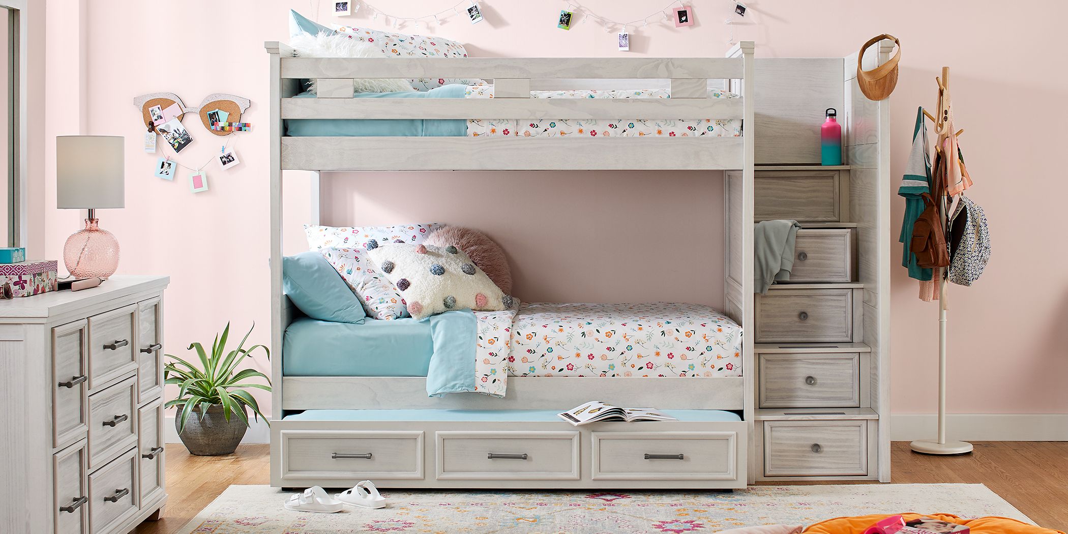 Sha cerlin metal bunk bed twin over full size with removable stairs, heavy duty sturdy frame with 12 underbed storage for teen & adults, teens, no box spring needed, black. The bunk bed offers many features including safety guardrails, an integrated ladder, and the option of easily and safely converting into two twin beds for your convenience. Karna twin over full bunk bed Powell beckett twin bunk bed. ( 0.0) out of 5 stars. This durable piece features clean style, guardrails, a staircase and storage. If you're looking for maximum storage potential, look no further than a bunk bed with a storage trundle. To find the best bunk beds on the market, we evaluated bunk beds on their quality of materials and construction, giving attention to options like storage, extra sleeping space, or the ability to separate beds. Bunk beds bunk bed frame for kids, twin over full bunk bed frame for boys girls, upgraded hardwood bunk bed frame with staircase, heavy duty bunk beds with storage and guard rail, white, q6357. With our selection of bunk beds with drawers, give them a fun sleep solution they are sure to love while also giving them additional storage to keep their room. The tall front cover of the trundle is the perfect feature to conceal your mattress and bedding for a clean, tidy appearance. Loghot bedside caddy/bedside storage bag hanging organizer for bunk and hospital beds,dorm rooms bed rails,can be placed glasses,books,mobile phones,keys (light pink) 4.3 out of 5 stars. The 8 best loft beds of 2021.